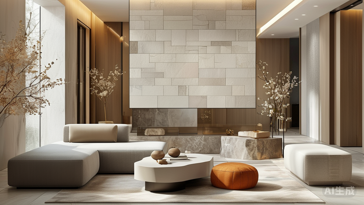 柔光砖的色调自然,纹理立体感强,可融入现代简约、轻奢、新中式等多种风格。例如米灰色柔光砖搭配奶油色沙发,能营造“软糯温柔”的质感;暖灰色砖面则能强化现代复古的调性。哑光砖的仿石材或木纹设计,更适合北欧、日式等自然系风格。