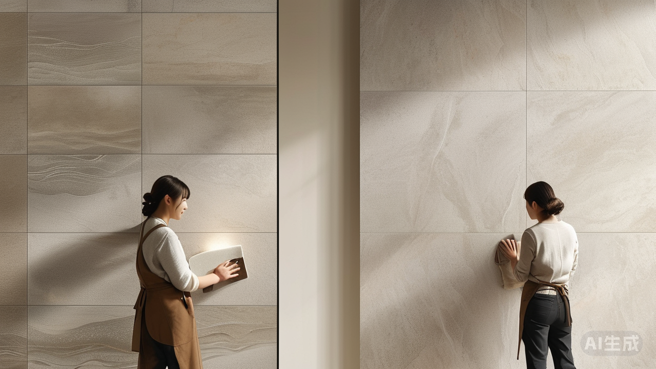 柔光砖的砖面平整且无“水波纹”,能弱化划痕和日常污渍的显眼度;哑光砖的纹理设计(如仿水泥、木纹)则能进一步掩盖使用痕迹,适合忙碌的都市家庭。